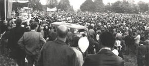 Eine der größten politischen Veranstaltungen im Oberbergischen Kreis: CDU-Kanzlerkandidat Helmut Kohl im September 1976 auf dem Platz vor der Stadthalle in Gummersbach. Im Jahr 1980 wurde die Situation allerdings schwieriger. Der Oberbergische Kreis war jetzt ein in sich geschlossener Bundestagswahlkreis und gleichzeitig aufgeteilt in zwei Landtagswahlkreise. Schon die Landtagswahl am 11. Mai stand ganz im Zeichen der Bundespolitik. „Krieg oder Frieden“ war das Schlagwort. Hinzu kam der plötzliche Tod des Spitzenkandidaten Heinrich Köppler, der die Partei für eine kurze Phase lähmte. Unsere Kandidaten Hans Wichelhaus und Dr. Hans Horn wurden jedoch mit einem beachtlichen Ergebnis gewählt. Dies schaffte auch Dr. Horst Waffenschmidt bei der nachfolgenden Bundestagswahl. Ein Jahr früher hatte die CDU auf Kreisebene ihre absolute Mehrheit, allerdings um 1 Sitz geschrumpft, verteidigt. Sie erreichte mit 50,8 % den gleichen Stimmenanteil wie bei der ersten Direktwahl zum Europäischen Parlament im gleichen Jahr. Unser Vertreter dort wurde Gerd Ludwig Lemmer aus Remscheid, der Kandidat der CDU des Bergischen Landes. Auf Kreisebene blieb politisch alles beim alten. In der Verwaltung vollzog sich jedoch ein einschneidender Wechsel. Oberkreisdirektor Dr. Goldenbogen räumte nach 33 Jahren seinen Schreibtisch und ging in den wohlverdienten, aber ungeliebten Ruhestand. Der Kreistag wählte zu seinem Nachfolger den Wiehler Stadtdirektor und früheren stellv. Kreisvorsitzenden der CDU, Dr. Dieter Fuchs.